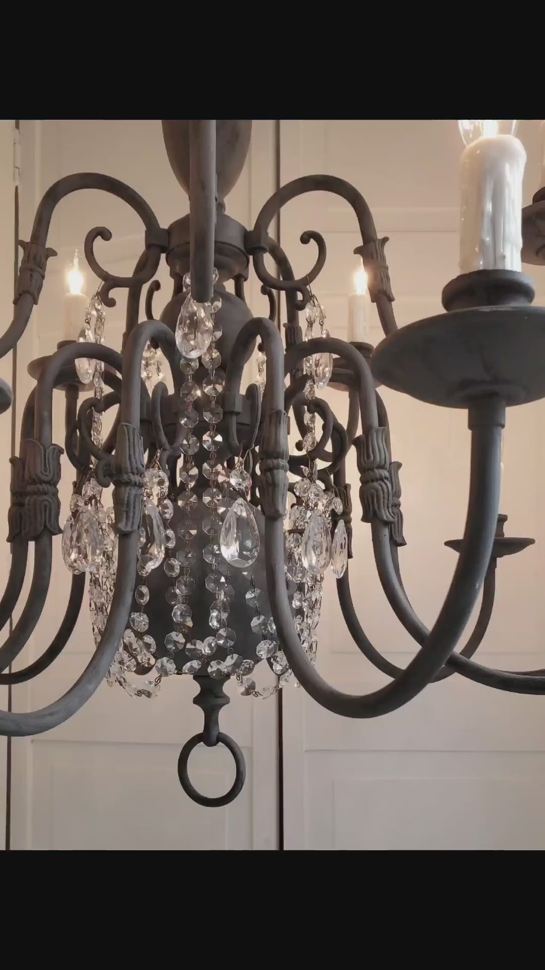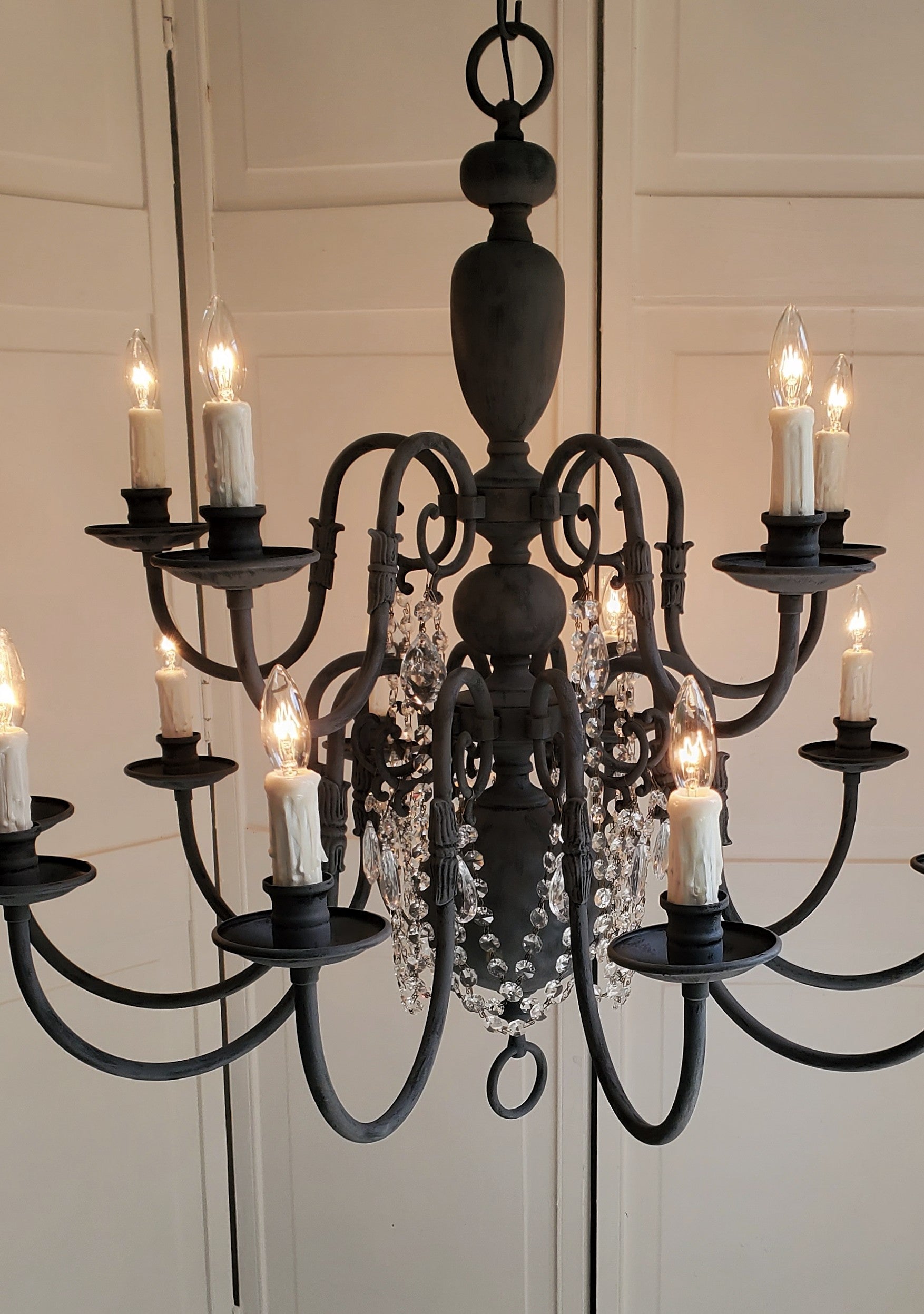 SOLD- Vintage Brass Chandelier 15-light Handpainted Black Zinc Patina w/Crystals (LOCAL PICKUP)